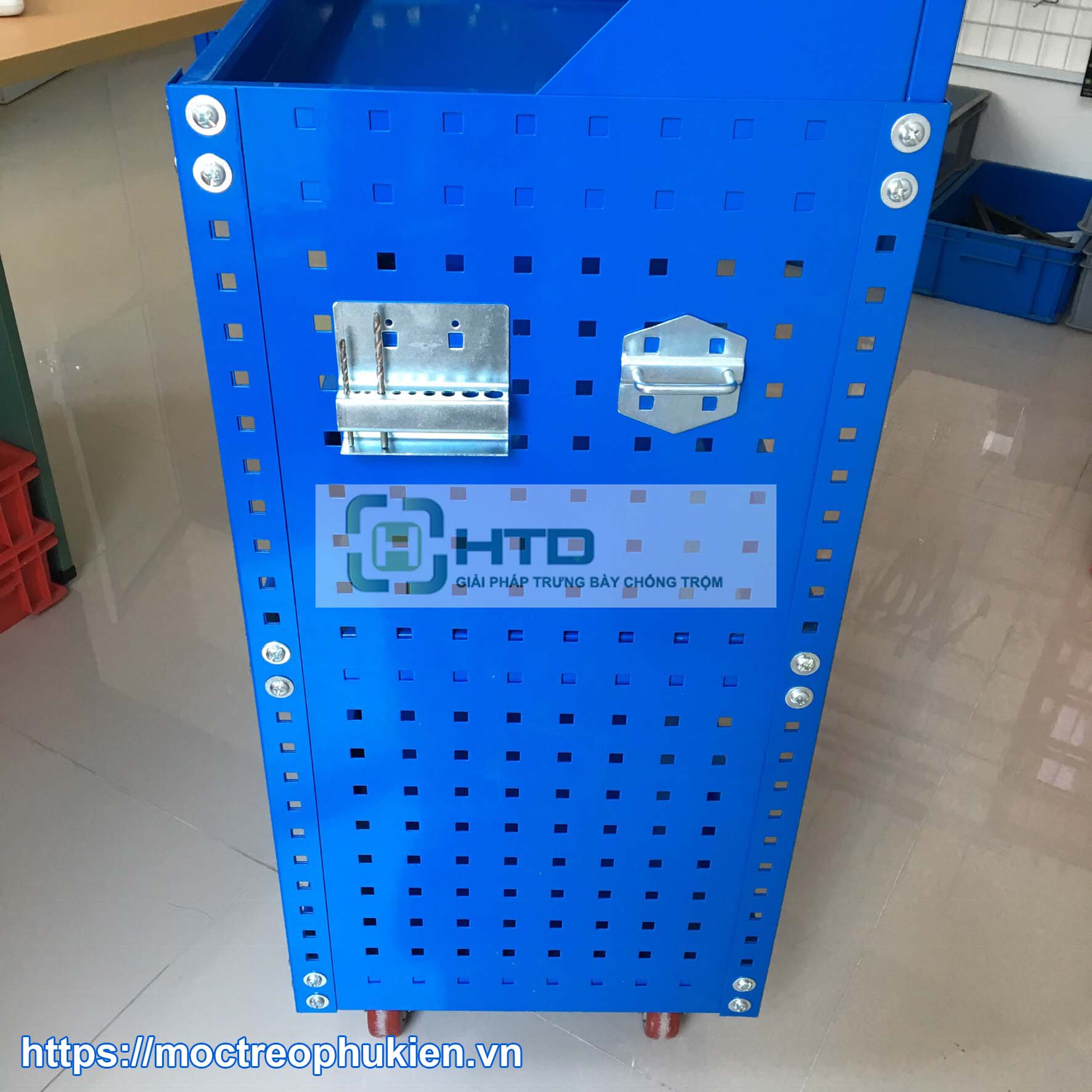 Hai bên hông của sản phẩm được đục lỗ vuông 1*1 bạn có thể gắn kèm các dòng phụ kiện như móc treo, bộ dụng cụ trưng bày mũi khoan, hay tuavit để tăng khả năng sử dụng cùng sản phẩm.
