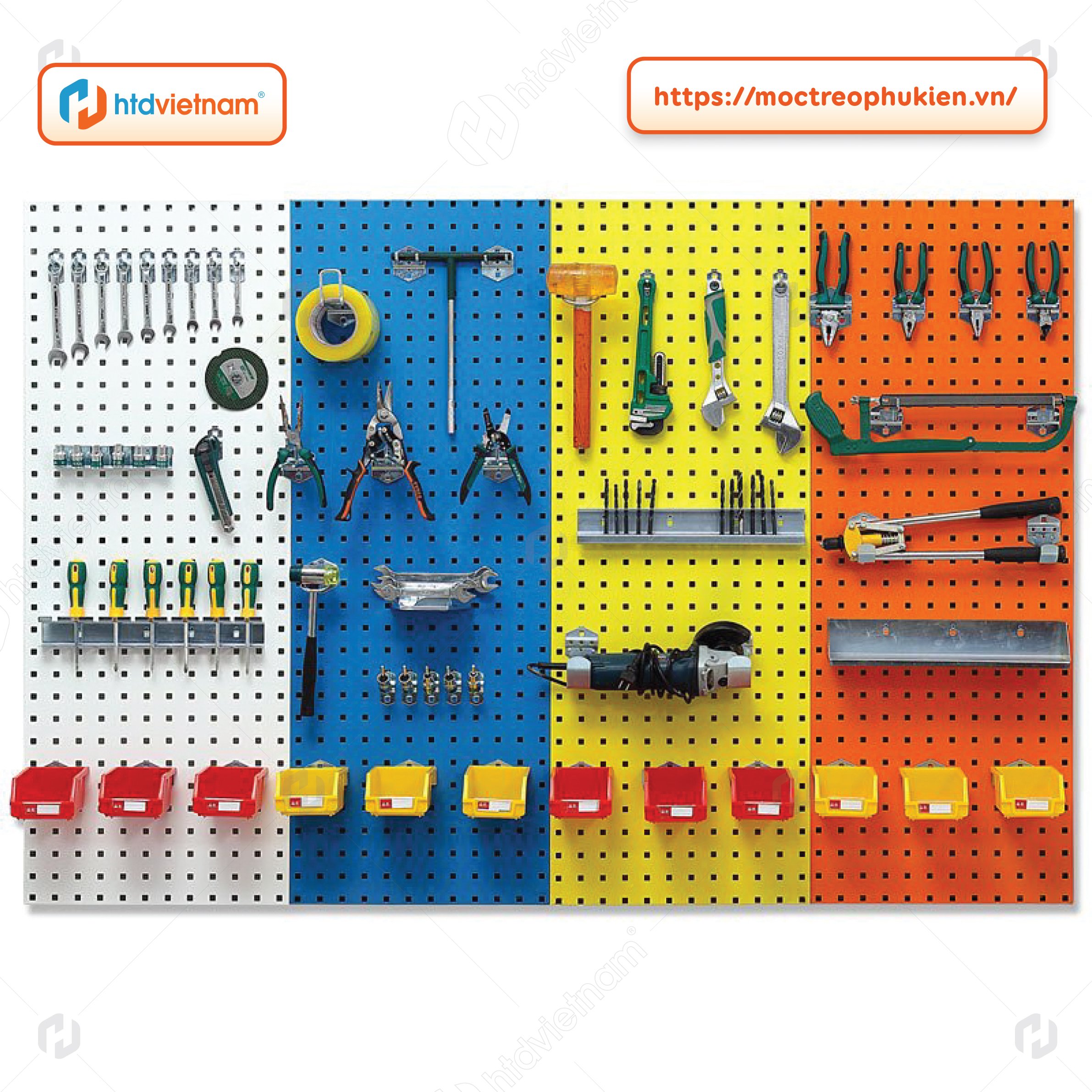 - Thiết kế dạng lỗ ô vuông thông minh giúp bạn dễ dàng sử dụng, kết hợp với những loại móc treo dụng cụ đang có trên thị trường.
