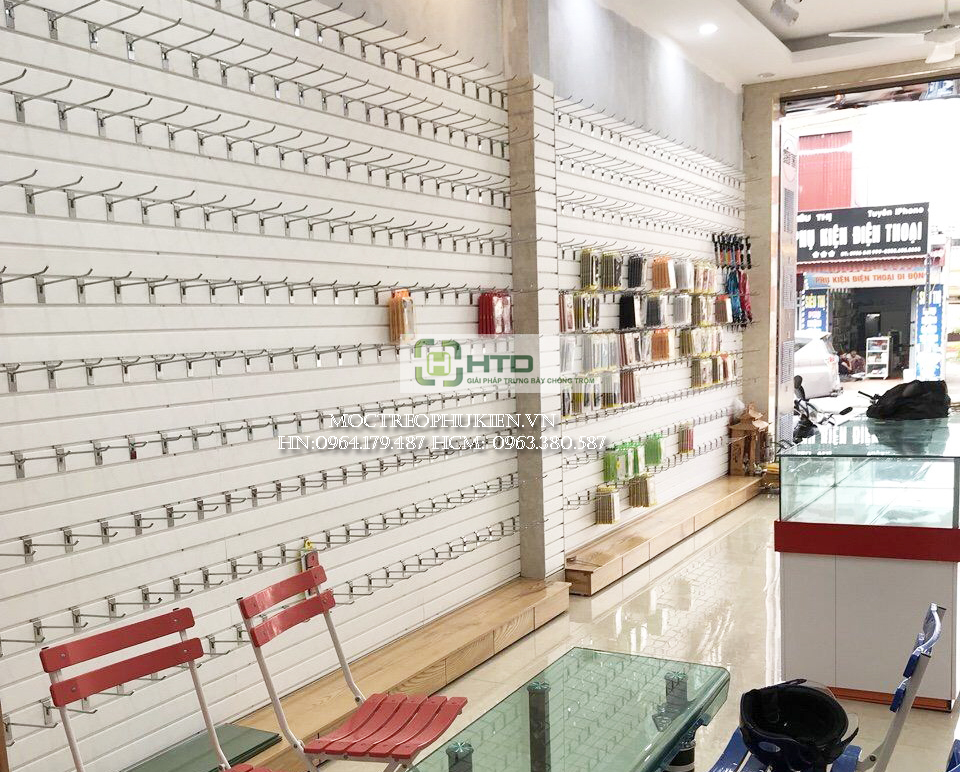 Tấm nhựa slatwall PVC được sử dụng như 1 bức vách treo tường, kết hợp cùng các dạng móc treo, phụ kiện chuyên dụng để tạo cho bạn bộ kệ trưng bày hàng hóa, treo phụ kiện điện thoại ưng ý nhất.