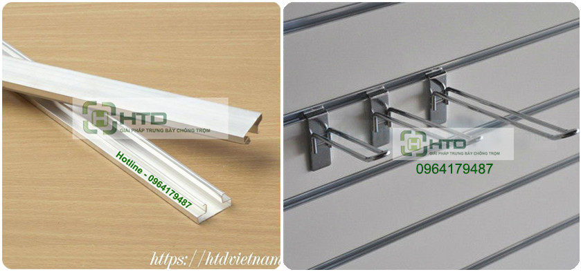 Dạng thanh ray cuối cùng còn được gọi với 1 cái tên khác là rãnh cài móc treo(rãnh nhôm cài tấm slatwall).